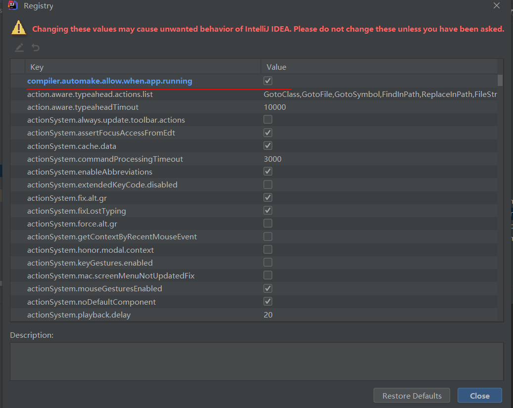 ctrl + shift + alt + / ,选择Registry,勾上 Compiler autoMake allow when app running
