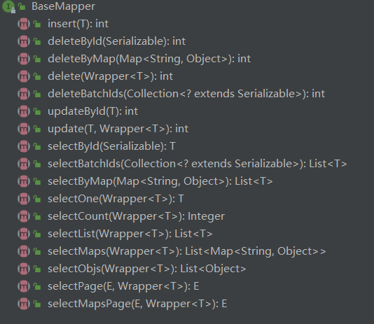 - BaseMapper:public interface BaseMapper