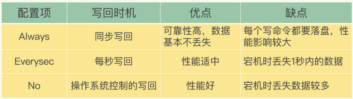 1)always:同步写回,每个写命令执行完立刻同步地将日志写回磁盘