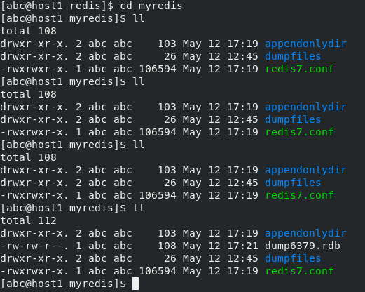 注意:更改后rdb文件不会再存储到dumpfiles下,而是也直接在myredis下