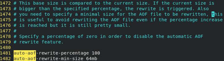 AOF文件重写触发机制:通过redis.conf配置文件中的auto-aof-rewrite-percentage:默认值为100,以及auto-aof-rewrite-min-size: 64mb配置,也就是说默认Redis会记录上次重写时的AOF大小,默认配置是当AOF文件大小是上次rewrite后大小的一倍且文件大于64M时触发。