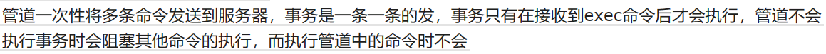 管道是为了解决命令往返过于频繁而导致的RTT时长过长,仅仅是将命令打包一次性发送,对整个redis的执行不造成其他任何影响。