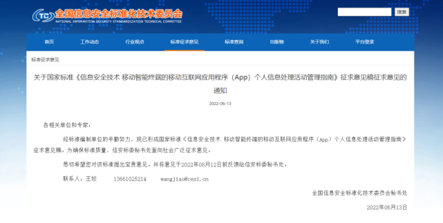 近日,全国信息安全标准化技术委员会发布了《信息安全技术 移动智能终端的移动互联网应用程序 (App) 个人信息处理活动管理指南(征求意见稿)》(以下简称《征求意见稿》)。