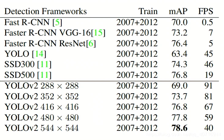 - YOLOv2每迭代几次都会改变网络参数。每10个Batch,网络会随机地选择一个新的图片尺寸,由于使用了下采样参数是32,所以不同的尺寸大小也选择为32的倍数{320,352…..608},最小320320,最大608608,网络会自动改变尺寸,并继续训练的过程。这一政策让网络在不同的输入尺寸上都能达到一个很好的预测效果,同一网络能在不同分辨率上进行检测。当输入图片尺寸比较小的时候跑的比较快,输入图片尺寸比较大的时候精度高.