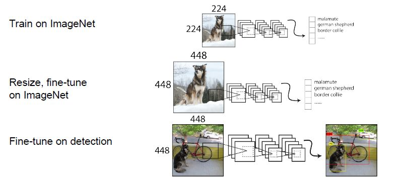 - 先使用224*224图像YOLOv2增加了在ImageNet数据集上使用 448大小图片输入来finetune分类网络这一中间过程(10 epochs),这可以使得模型在检测数据集上finetune之前已经适用高分辨率输入。即224大小图片训练分类网络->448大小图像训练分类部分网络->448大小图像训练检测网络。使用高分辨率分类器后,YOLOv2的mAP提升了约4%。