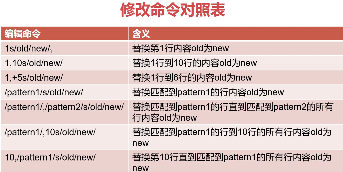 Sed “s/1..e/&r/g” file 在file中搜寻以1开头,然后跟两个任意字符,以e结尾的字符串,用&代替搜寻到的字符串增加r字符后,对file进行修改