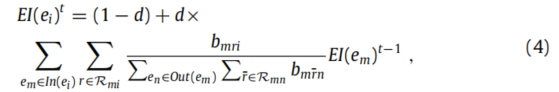 注意:其中d是一个超参数,表示一个假想的游走者随机移动到邻近实体的概率,(1−d)表示随机传送到任何其他实体的概率。Out(e(m))表示一个实体e(m)所指向的邻域。