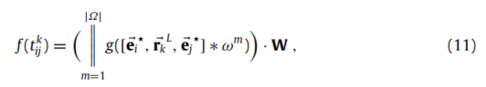 在现有的KG补全(KGC)模型中,我们使用最新的模型ConvKB作为解码器模型。给定一个三重t(i, j, k),评分函数被正式定义为: