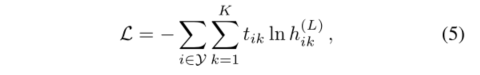 对于节点(实体)的监督分类,我们先堆叠R-GCN层,然后在最后一层输出层使用softmax激活函数,我们使用交叉熵损失函数如下: