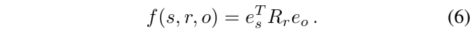 在我们的实验中,我们使用DistMult因式分解模型作为评分函数,三元组(s, r, o)的得分函数如下: