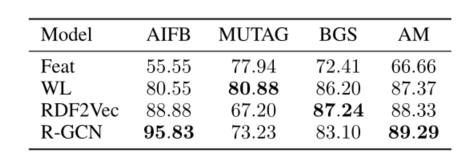 **注意: **将复杂的评分函数(解码器)应用于R-GCN将是未来工作的一个很有希望的研究方向。