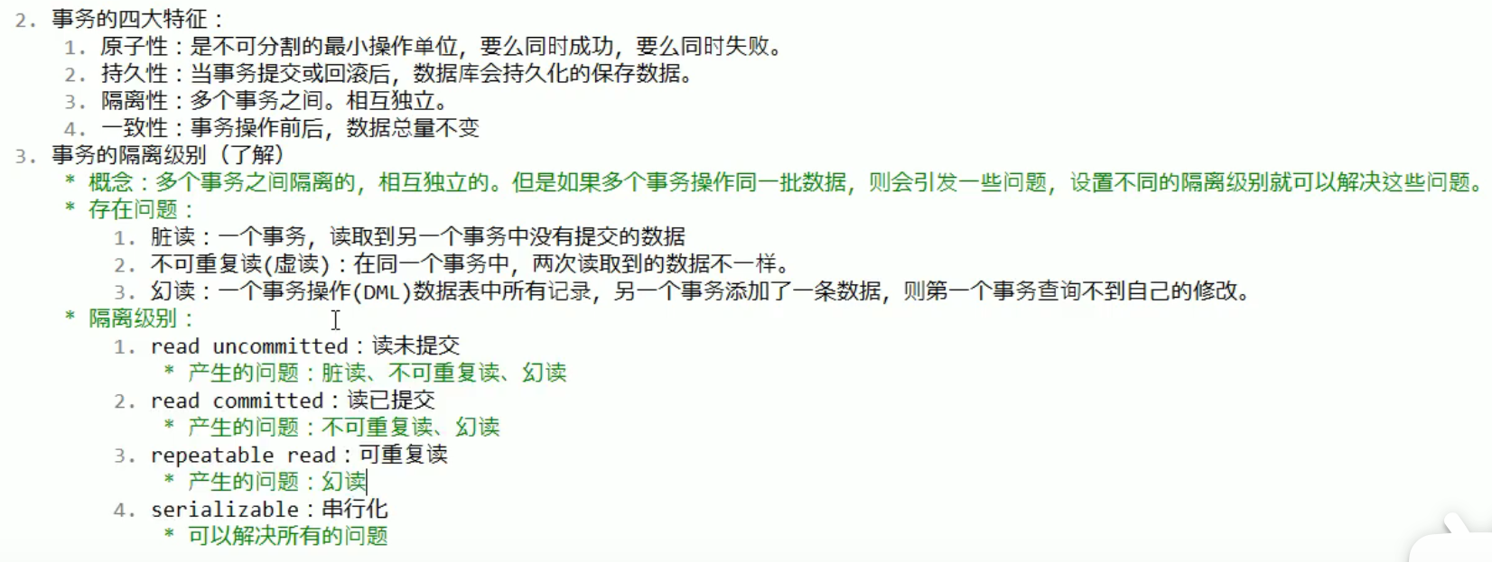 注意:隔离级别从小到大安全性越来越高,效率越来越低