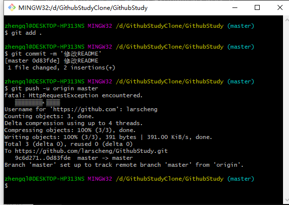 注:初次提交时,会需要验证你的Github用户名和密码,根据命令提示输入后即可完成推送