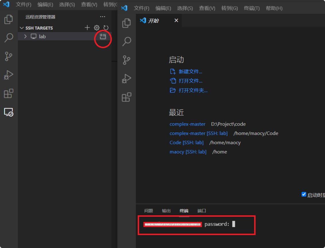点击SSH TARGETS下的服务器旁边的按钮纽行连接,弹出让你输入密码:
