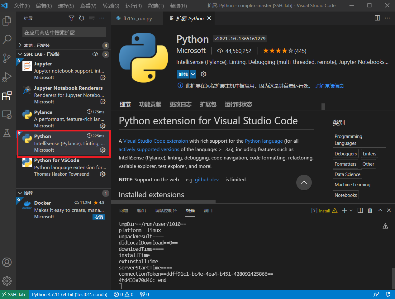 Remote-SSH是VScode的插件,安装完VScode以后,直接在插件中搜索ssh,即可找到Remote-SSH,点击install安装。