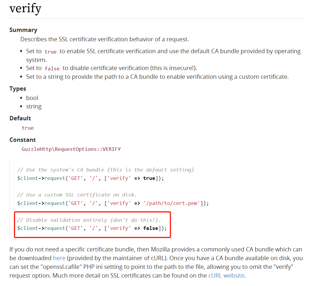 备注:使用 http client 请求时需关闭证书校验,比如 https://docs.guzzlephp.org/en/stable/request-options.html#verify