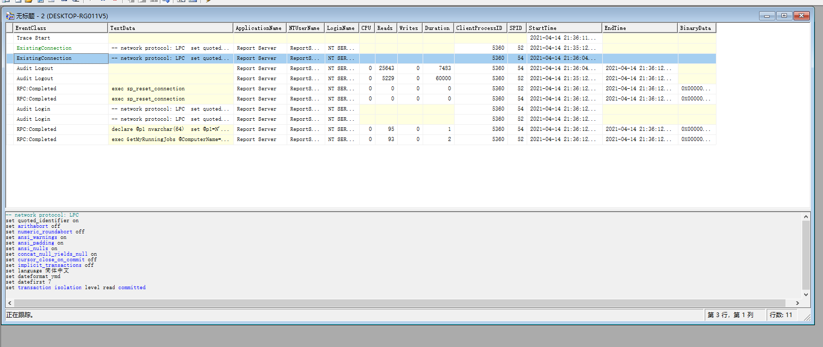 点击运行后,我们就能持续的监视SqlServer的动作。