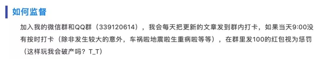 专栏更新了半年多,由于手头事情太多就停更了,我发现,坚持原创更新,持续输出是非常难的,但是这是对自己技术积累的一个好的出口渠道,可以让自己再回顾和反思自己的技术积累够不够。我一直认为,如果我写的文章别人看不懂,那就是我还没有理解透彻,是我的问题。所以我一直把博客当作技术积累的一个沉淀池,希望大家多多交流和讨论。于是今年6月14日的时候,我决定在公众号持续输出,每天早上九点给大家带来干货,还立了一个Flag