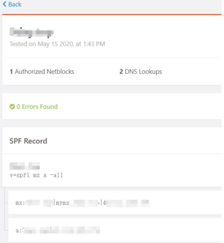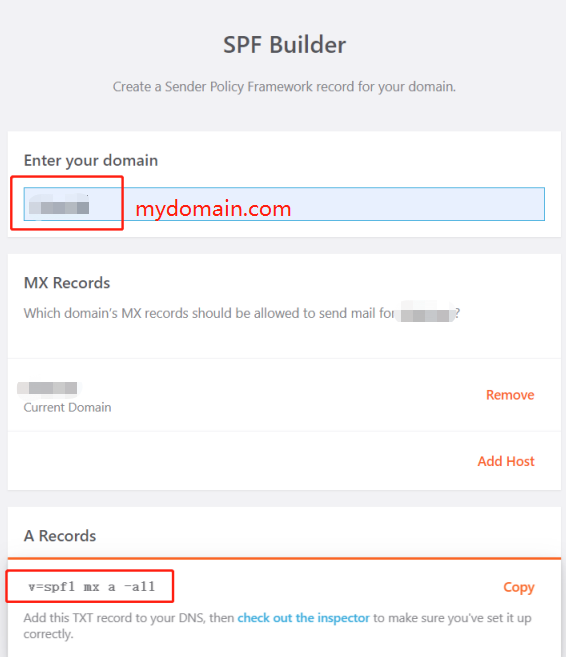 添加完成后https://tools.sparkpost.com/spf/inspector输入域名验证SPF记录是否有效。