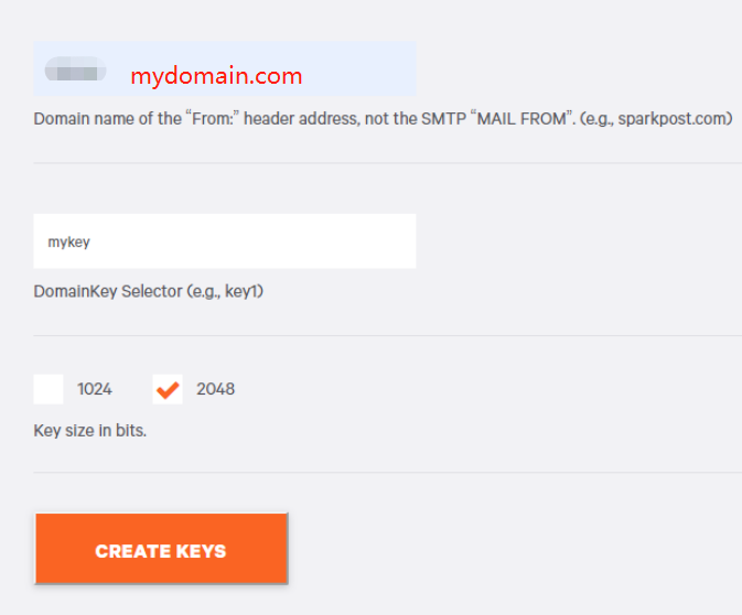 访问https://www.sparkpost.com/resources/tools/dkim-wizard/输入域名和Selector<selector名称自定义>