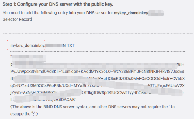 根据上一步生成的结果在阿里云添加DKIM记录