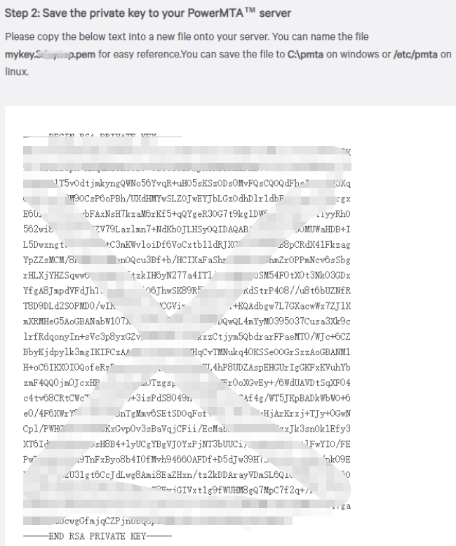 配置DKIMY证书,将生成的私钥保存为pem文件, 如mykey.mydomain.com.pem