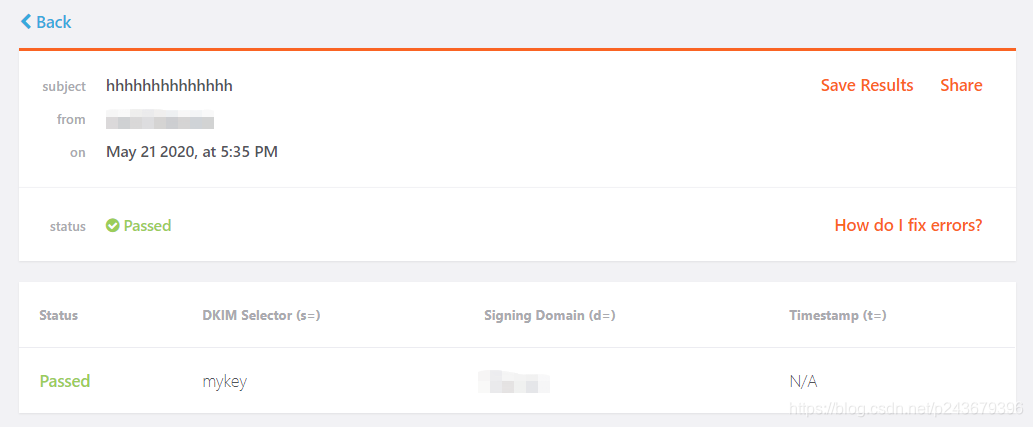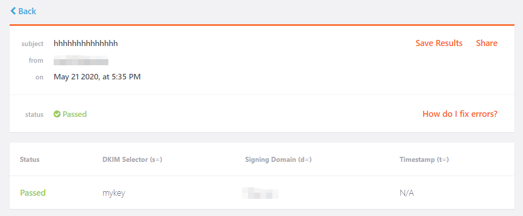 6. 访问https://tools.sparkpost.com/dkim并往随机生成的邮箱发送邮件验证DKIM是否是pass状态。