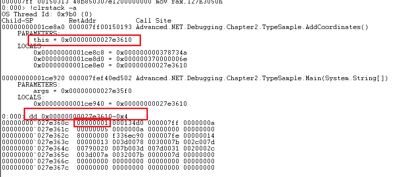 《Advanced .NET Debugging》 读书笔记 Listing 2-7: 使用debugger查看对象的syncblk的数据