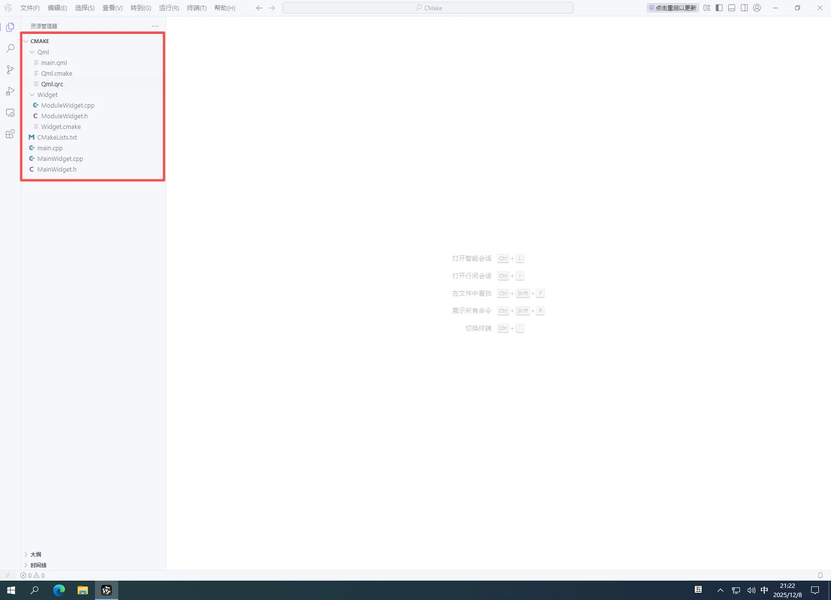 1.在“CMake-模块化”的基础上,新建一个文件夹,并命名为“Qml”,然后添加下面三个文件: