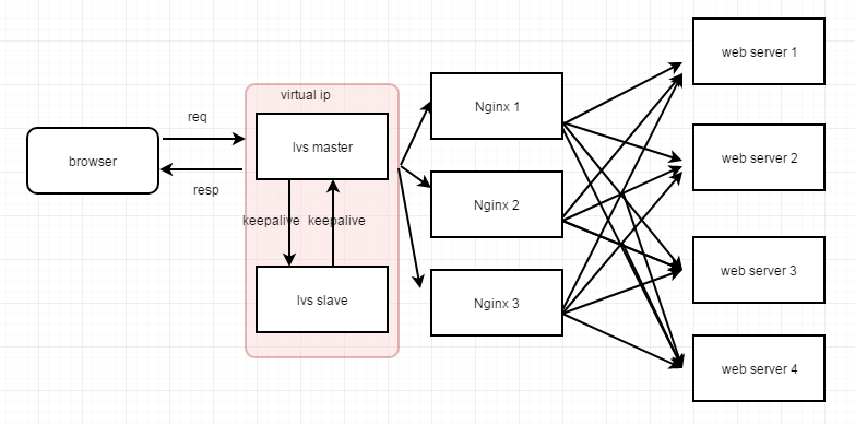4.目前 对 Nginx 做了高可用基本上可以满足一般的小网站了,当然 Nginx 是七层负载,在应用层做 http 解析,当用户量特别大的时候效率还是有一定影响的。lvs 是在四层做负载,不需要解析 http 协议,所以要比 Nginx 更快,所以我们可以在 Nginx 之前在做一层负载。