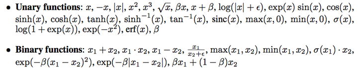 补充一篇Google Brain[10] 的观点。这篇文章里基于RL对激活函数进行了搜索,包括很多一元函数和二元函数的组合: