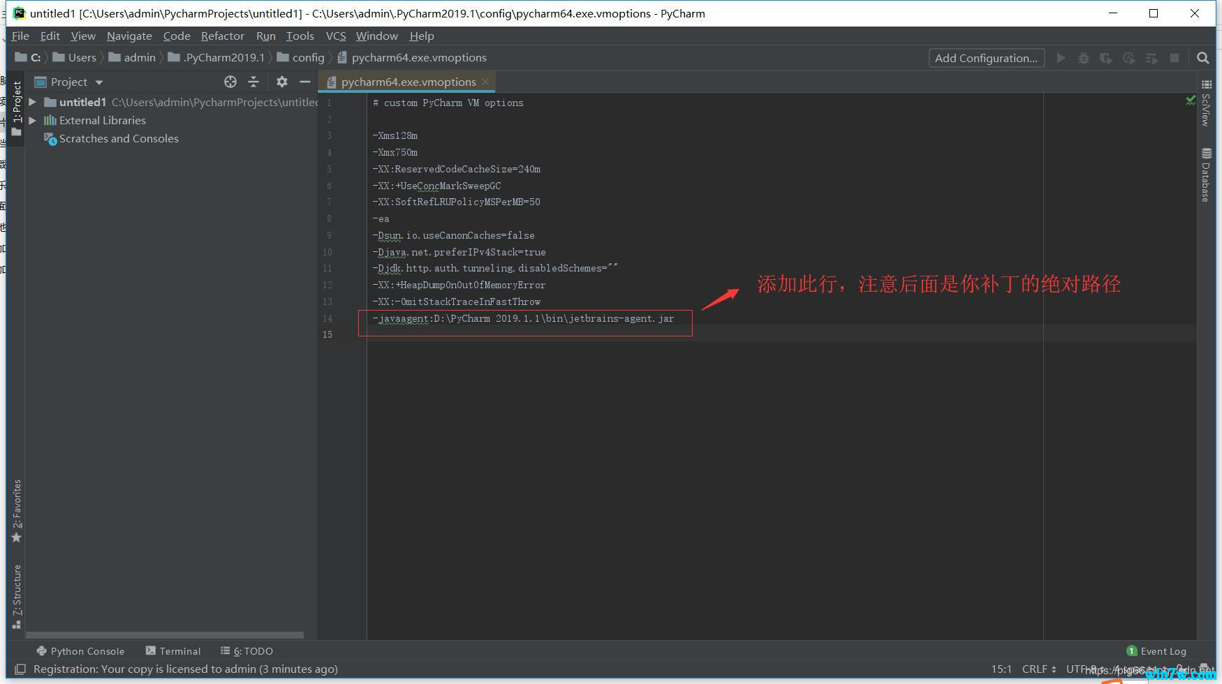 复制上面的序列号并将它放置到 pycharm安装目录的\bin目录