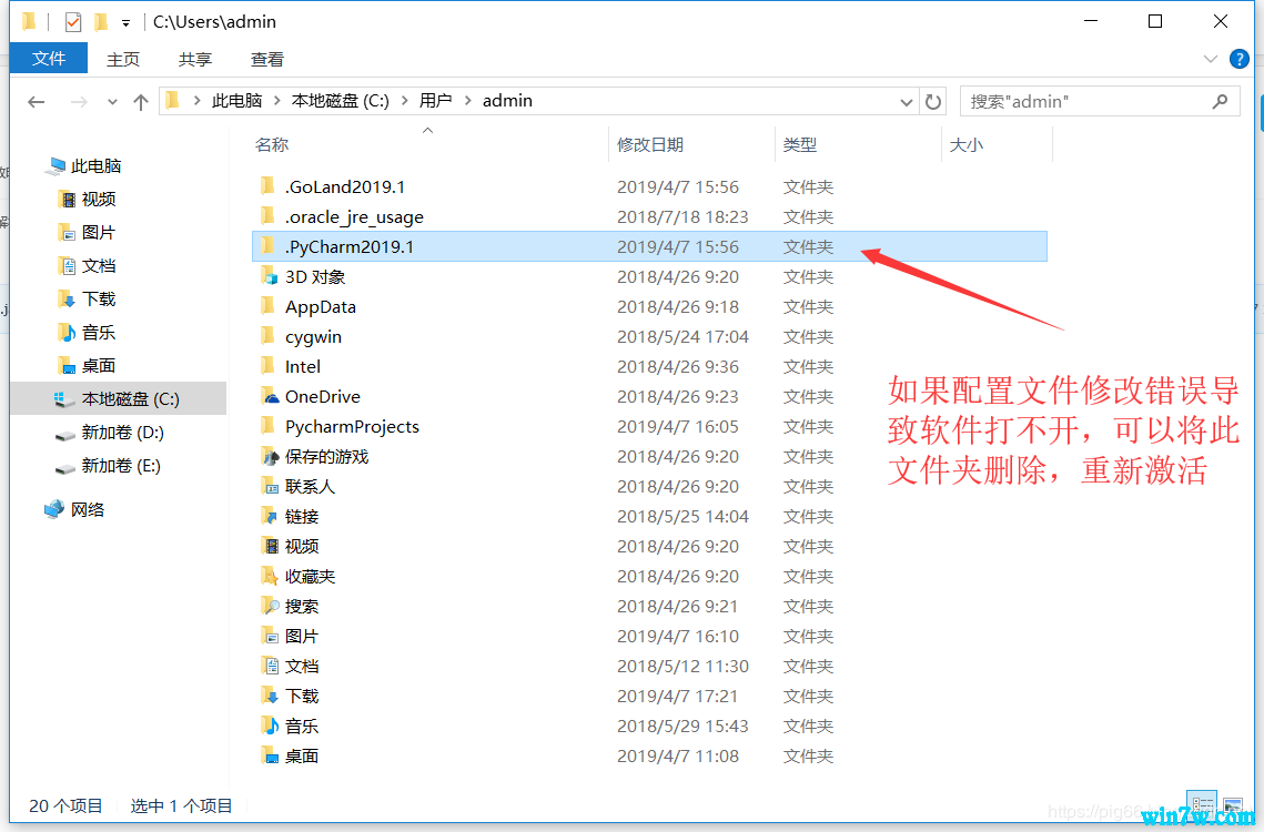 请仔细检查补丁路径是否正确,如果错误则会出现Pycharm打不开的情况,这时候可以删除用户配置目录下的pycharm文件夹:
