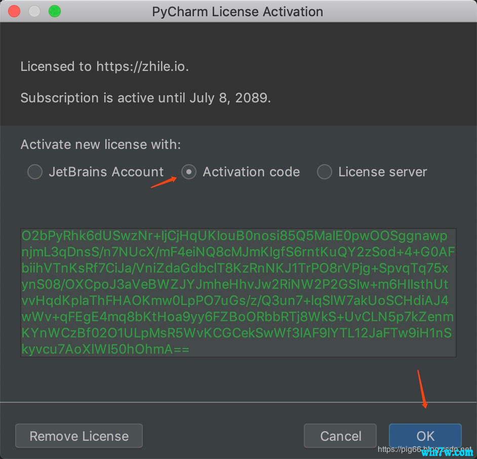 二、如果服务器激活方式无法激活,还可以选择Activation code方式激活,复制下面激活码即可