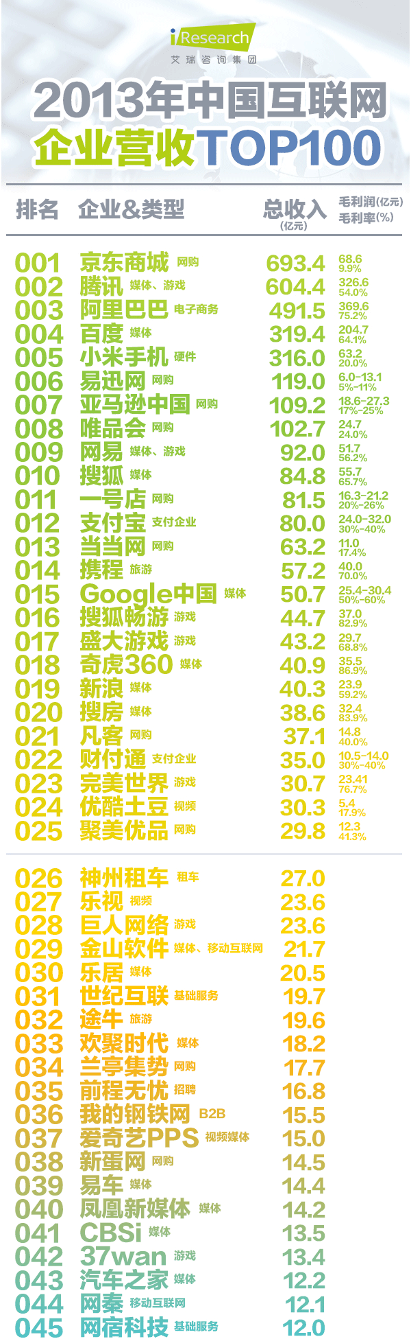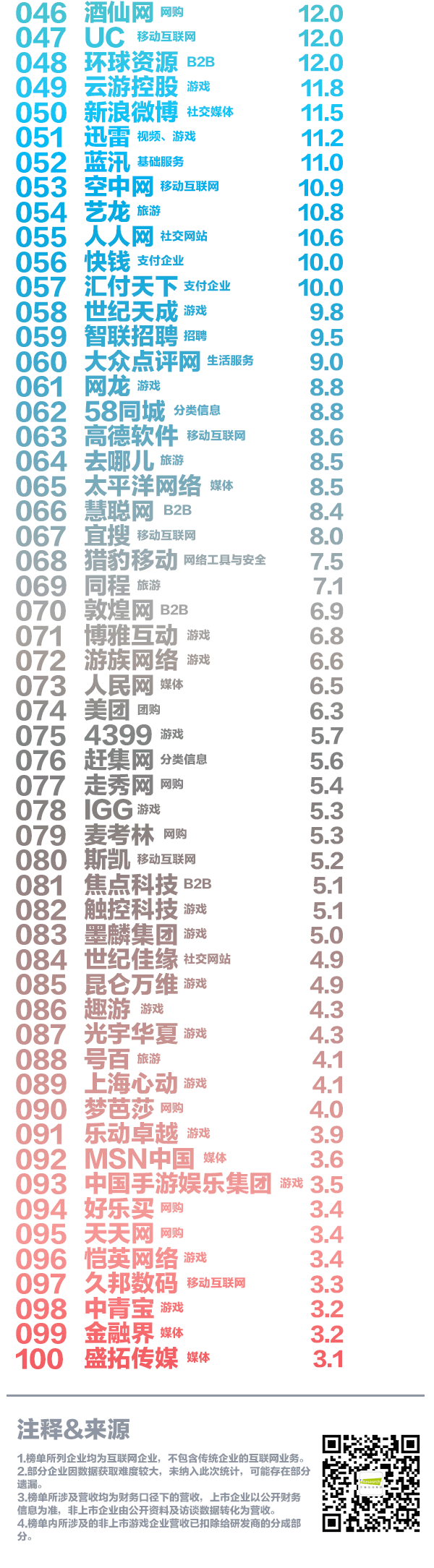 中国互联网企业营收TOP100