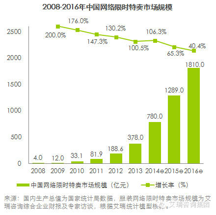 2016年中国网络限时特卖市场规模预计将突破1800亿元