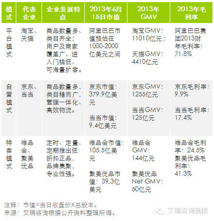 淘宝天猫平台模式、京东自营模式、唯品会特卖模式