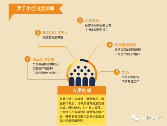就这样,小组制模式成形了:买手+视觉人员+运营人员。