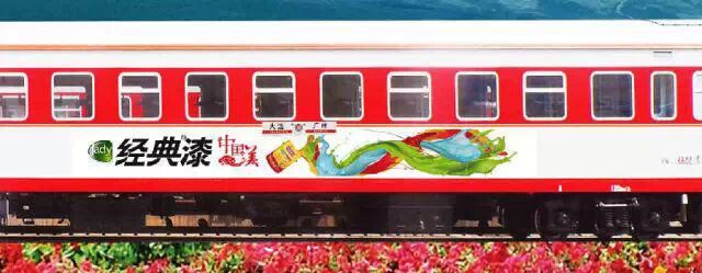 现如今火车也是蛮拼的,这列“经典漆号”K369/K370大连-广州往返的火车,是中国首列车身彩绘的列车。车身绘制了三缎绯红、明媚绿和宝玉蓝交织的油漆缎带,出自经典漆“瑞彩千呈”的色彩系列。据说,拿着此列列车火车票,还可以至经典漆全国任一经销商处兑换神秘礼品一份,或者,拍摄沿途美景发送至经典漆官方微信号,还能参加幸运大抽奖,难道礼品是传说中的某6?某plus吗?