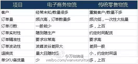 而都有哪些关键因素对电商仓储物流和传统零售物流产生重要影响?结合其各自面向的客户、订单以及逆向物流因素,对电商仓储物流与传统零售物流进行对比分析,其详细的对比分析见表1。