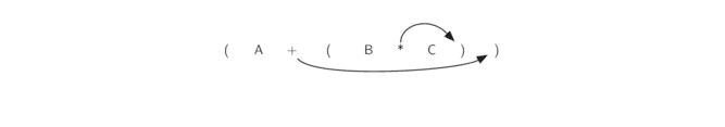 A+BxC可以写成(A+(BxC)),以明确标识乘法优先于加法,圆括号对的位置实际上是包含的运算符的最终位置的线索。