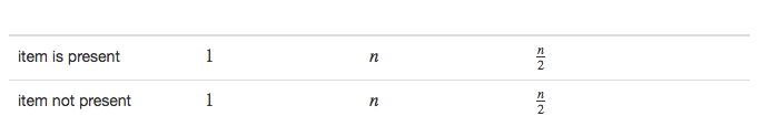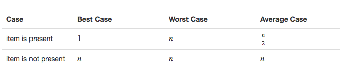 在最好的情况下,我们通过只查看一项会发现该项不在列表中。 平均来说,我们将只了解 n/2 项就知道。然而,这种复杂度仍然是 O(n)。