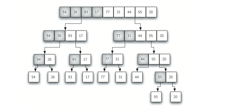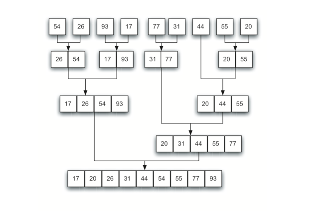 归并排序是使用分而治之策略作为提高排序算法性能的一种方法。