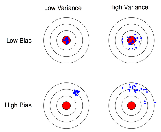 Bias(偏差) 反映的是模型在样本上的输出与真实值之间的误差,即模型本身的精准度,即算法本身的拟合能力