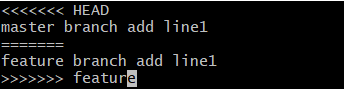 Git用<<<<<<<,=======,>>>>>>> 标记出不同分支的内容,此时就需要我们进行手动修改,将这个文件中的内容改为我们最终想要的样子,例如:confict fixed line1。