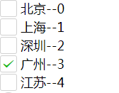 Page({ data: { values: [ { name: "1", value: '北京', checked: false }, { name: "2", value: '上海', checked: false }, { name: "3", value: '深圳', checked: false }, { name: "4", value: '广州', checked: true }, { name: "5", value: '江苏', checked: false } ] },checkboxChange(e){ console.log(e); });