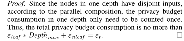 给定树的总数T和每个集成中的树数Te,我们可以得到集成的总数Ne= T /Te。然后,每棵树的隐私预算为(ε/Ne)。