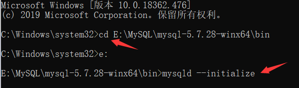 (4)cd bin文件的路径 进入后输入mysqld --initialize