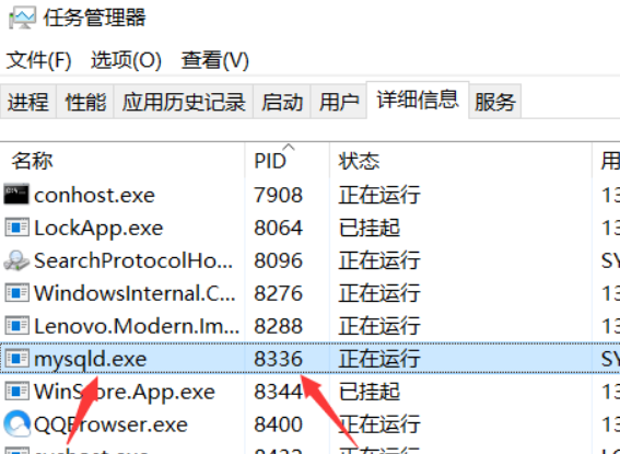 (2) 打开任务管理器 点击详细信息 找到上一步PID对应的应用