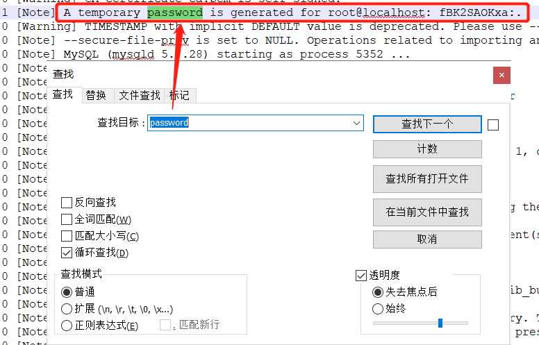 这是因为初始化的时候,随机生成了一个root帐户密码。该密码可在/data文件夹下后缀.err的文件中查看,找到该文件,以记事本的方式打开,将密码复制出来,如下图,我的随机密码是fBK2SAOKxa: